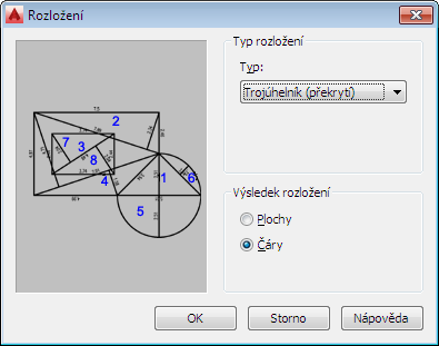 Tento postup slouží k určení typu dílčích entit, na něž je prostor rozložen, a typu entit aplikace AutoCAD, na něž je rozložený prostor převeden při rozbalení.