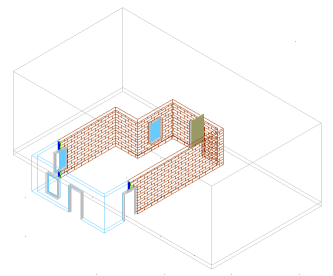 Objekty a částí objektů, které jsou vně řezu, se zobrazí odlišně. Můžete je buď úplně skrýt nebo je zobrazit na komponentě zobrazení Těleso v řezu. Komponenta zobrazení Těleso v řezu je zadána v materiálu, přiřazeném k objektu.