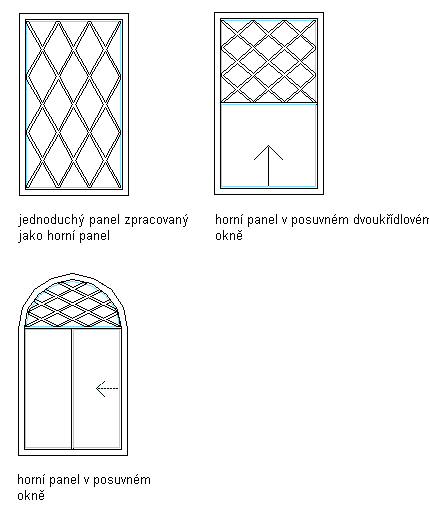 10. Jestliže styl okna obsahuje vícenásobný parapet, zadejte, zda chcete mřížky použít pro komponentu parapetu v okně typu Horní, Vše nebo Jeden: