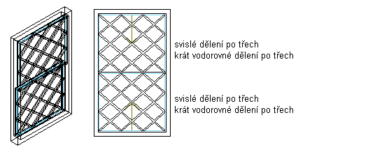 Kosočtvercový vzor je možné aplikovat na všechny tvary a typy oken s výjimkou Otvoru s rámem.
