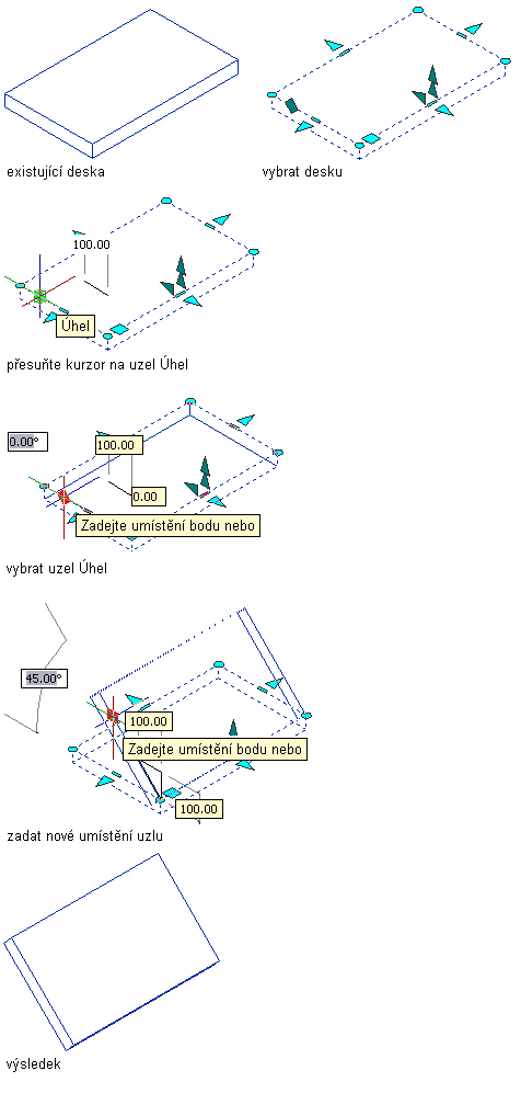 | nastavit sklon změnou stoupání desky | stiskněte klávesu Tab, dokud nebude označena hodnota stoupání a pak zadejte hodnotu nebo přesouvejte uzel, dokud nedosáhnete požadovaného stoupání. Pak klikněte tlačítkem myši. |