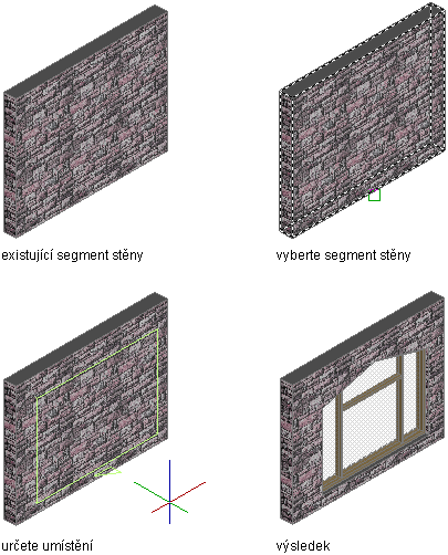 2. Vyberte stěnu nebo stiskněte klávesu Enter a pak určete bod vložení sestavy dveře/okno.