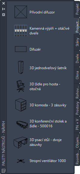 Jakmile je paleta přidána do sady palet nástrojů, zůstane součástí sady a je dostupná vždy po spuštění aplikace AutoCAD Architecture toolset.