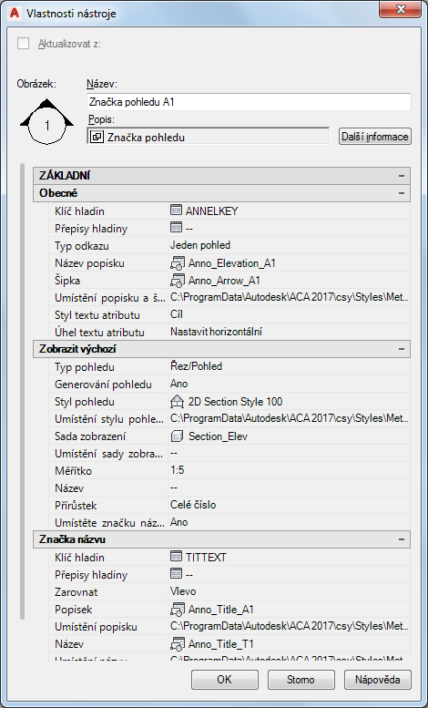 Specifický druh poznámky, její vzhled a další charakteristiky jsou určeny uživatelsky upravovatelnými hodnotami v tabulce Vlastnosti nástroje, která je dostupná v kontextové nabídce daného nástroje.