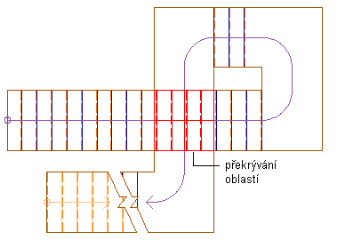 “komponenty „ dole (nad překrytím) Komponenty schodiště nad výškou řezu, které jsou nad překrývající sekcí