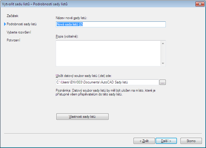 Zobrazí se průvodce sadou listů. Pomůže vám vytvořit novou šablonu sady listů.