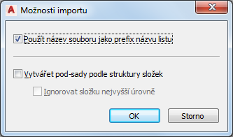 Tento postup slouží k vytvoření šablony sady listů, která obsahuje rozvržení z jednoho nebo více existujících výkresů. Dále můžete vybrat možnosti pro určení předpony pro názvy listů a názvy souborů a k vytváření dílčích sad ve struktuře složky. Pokud přesměrujete kategorie na nejvyšší úrovni v dialogu Vlastnosti projektu v tom projektu, ve kterém se sada listů nachází, je zde provedené nastavení přepsáno.
