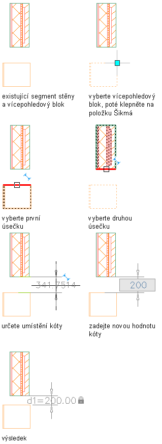 Osa segmentu stěny se zvýrazní jako červená čára.