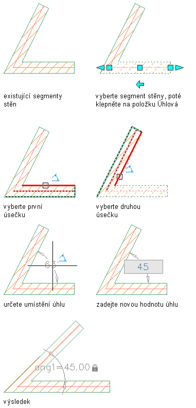 Použijte úhlovou vazbu k nastavení pevného úhlu mezi dvěma připojenými segmenty stěny.