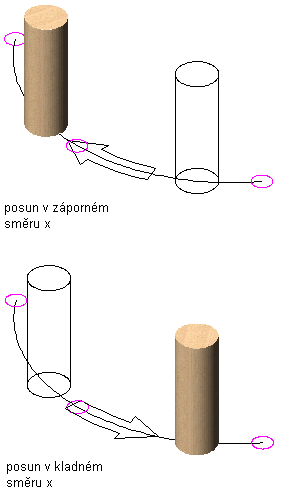 | určit, ze kterého bodu na ukotveném objektu je vzdálenost ve směru X ke křivce měřena | v poli Do vyberte Počáteční hrana objektu, Střed objektu nebo Koncová hrana objektu. |