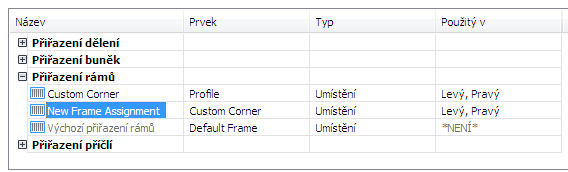 V seznamu přiřazení rámů se zobrazí nové přiřazení rámu.