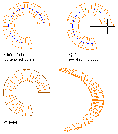 | vytvořit průběh spirálového schodiště bez výsečí | vybrat Volný pro Výseč oblouku. |