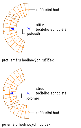 | nakreslit spirálové schodiště ve směru hodinových ruček | Pro položku Vodorovná orientace vybrat Ve směru hodinových ruček. |
