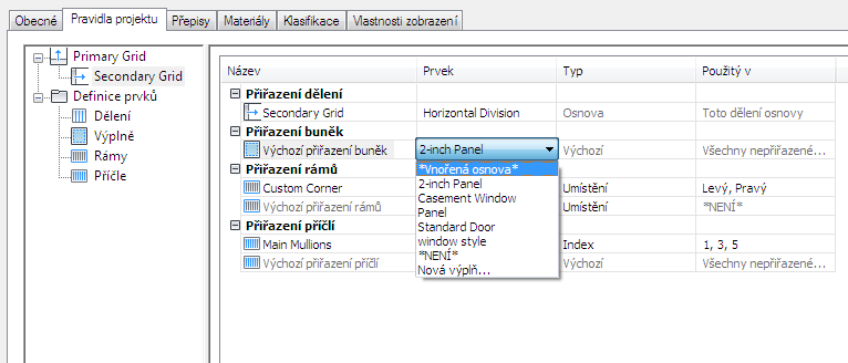 2. Rozbalte položku Architektonické objekty Styly sestavy dveře/okno.