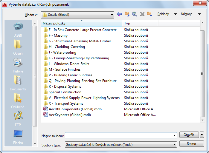 Tento postup slouží k přidání databáze do seznamu aktivních databází komponent detailů, ze kterých je možné vybírat komponenty pro vkládání, kopírovat je na paletu nástrojů nebo používat k úpravám stávajícího nástroje.