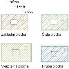 | Společná plocha na poschodí (FCA) | Koupelny, údržbářské místnosti, elektrické výměníky, telefonní místnosti, místnosti pro mechaniku, výtahové šachty a veřejné chodby |