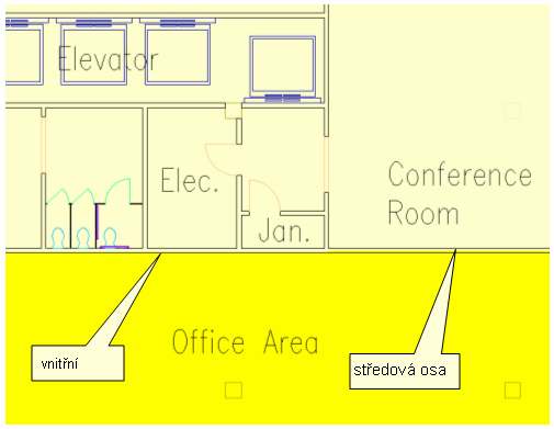 Hrubé hranice budou vytvořeny směrem ke středové ose stěny v případě, že existuje jiný sousedící prostor než průčelí průčelí/exteriér.