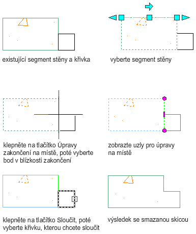 Tento postup slouží ke změně zakončení stěny pomocí sloučení profilu s komponentou. Profil může být libovolná křivkou uzavřená plocha, která překrývá specifickou komponentu nebo je s ní koincidentní.