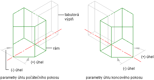 Tento postup použijte, chcete-li ručně vytvořit začištěný roh, ve kterém se střetává obvodový plášť s dalším objektem, jako standardní stěnou nebo objemovým prvkem. Pokud by například obvodový plášť navazoval na standardní stěnu pod úhlem 60 stupňů, nastavili byste úhel začištění styků na 30.