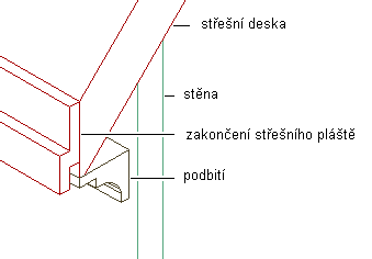 Střešní deska se zakončením střešního pláště a komponentami podbití