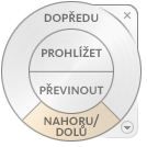 Místní nápověda se zobrazuje u každého tlačítka na kolečku, když na ně najedete kurzorem. Místní nápověda se zobrazuje pod kolečkem a označuje akce, které budou provedeny, když na klín nebo tlačítko kliknete.