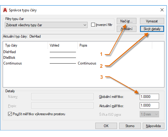 Tato akce zobrazí dialog Správce typu čáry.