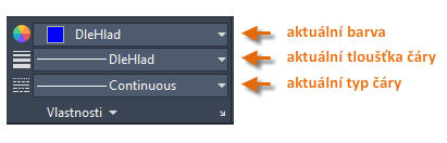 Vlastnosti, například barvu a typ čáry, můžete přiřadit k jednotlivým objektům nebo je nastavit jako výchozí vlastnosti přiřazené k hladinám.
