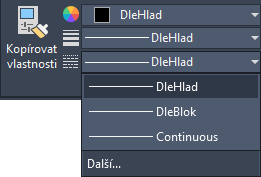 Chcete-li rychle zkopírovat vlastnosti vybraného objektu do jiných objektů, použijte nástroj Kopie vlastností nebo zadejte v příkazovém okně příkaz KOPIEVLAST, případně písmena KV.