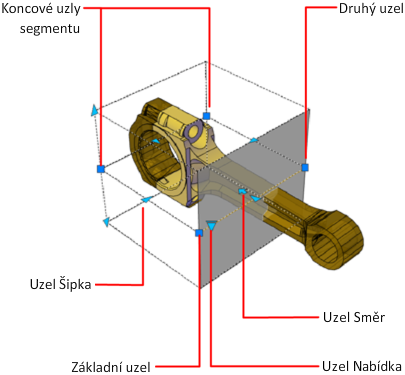 - Základní uzel Chová se jako základní bod pro posunutí, změnu měřítka a otáčení objektu řezu. Nachází se vždy vedle uzlu nabídky.