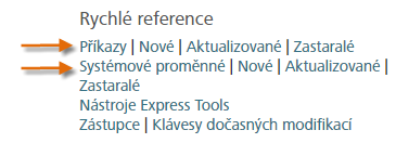 Stisknutím klávesy F1 otevřete nápovědu. Na domovské stránce nápovědy klikněte na odkaz Příkazy nebo Systémové proměnné.