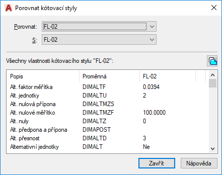 Určuje druhý kótovací styl pro porovnání. Pokud nastavíte druhý styl na <žádné> nebo stejně jako první, zobrazí se všechny vlastnosti zadaného stylu.