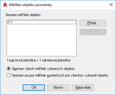 Určuje, že jsou v seznamu měřítek objektů zobrazena pouze měřítka, která jsou společná pro všechny vybrané objekty.