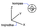 Zobrazí kompas a prostorový osový kříž („trojnožku“), pomocí kterých nadefinujete směr pohledu ve výřezu.