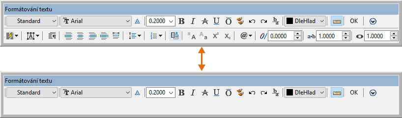 Rozšíří panel nástrojů Formátování textu o další možnosti. (U jednořádkového textu není dostupné.)