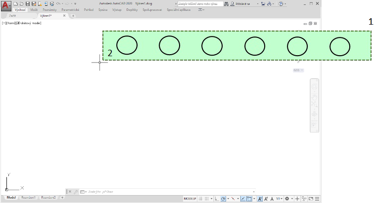 Se zapnutou proměnnou SELECTIONOFFSCREEN je možné nyní zahrnout do výběru objekty, které jsou mimo hlavní obrazovku (bod 1 na obrázku je mimo hlavní obrazovku).