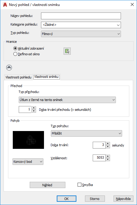 Definuje typ přechodu, který má být použit při přehrávání pohledu.