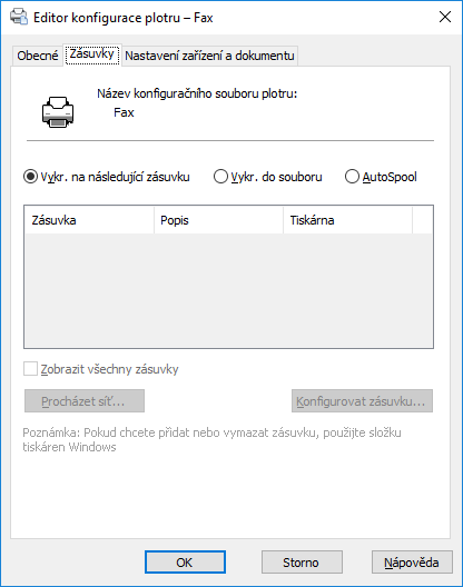 Zobrazí všechny dostupné zásuvky počítače bez ohledu na zásuvky dostupné pro plotr.