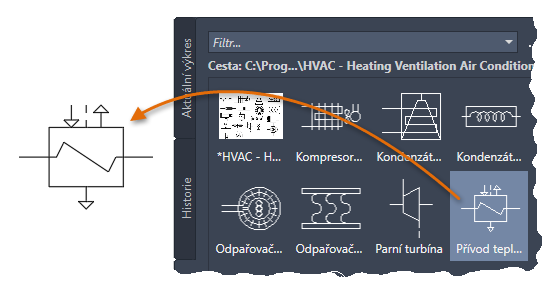 Symboly a detaily můžete do svých výkresů vkládat z komerčních online zdrojů nebo z vlastních návrhů.