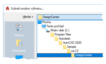 - Přejděte do složky DesignCenter, kde jsou uloženy různé vzorové výkresy.