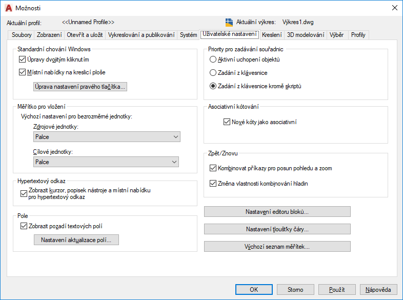 Řídí výchozí měřítko pro vkládání bloků a výkresů do výkresu.