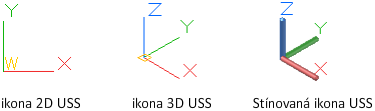 Ikona USS usnadňuje vizualizaci aktuální orientace uživatelského souřadnicového systému vzhledem k aktuálnímu směru pohledu. Několik verzí této ikony je k dispozici a lze změnit i její velikost, umístění a barvu.