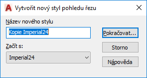 Pojmenuje nový styl řezu. Výchozím názvem nového stylu je název stylu Začít s, před nějž se doplní „Kopie“.
