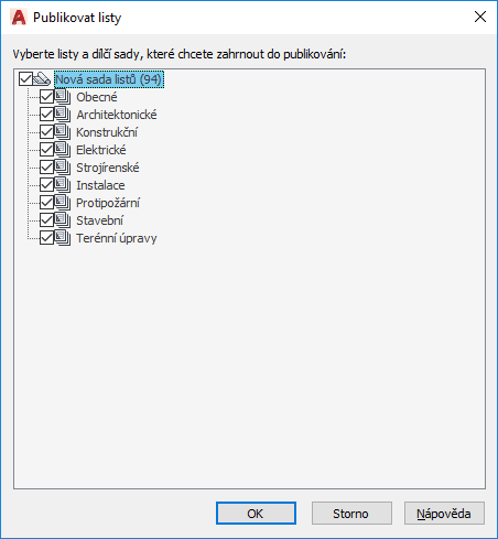 SADALISTŮ (příkaz) Hledat: Karta Seznam listů > Klikněte pravým tlačítkem na název listu > Publikovat > Upravit nastavení dílčí sady a publikování listů
