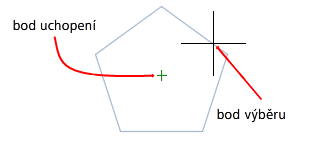 Uchopí bod vložení objektů, například atributu, bloku nebo textu.