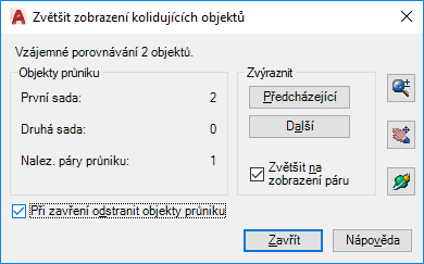 Zoomování na kolidující objekty při použití funkcí Předchozí a Další.