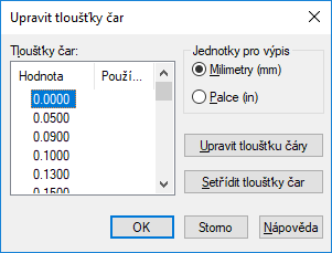 Definuje jednotky, ve kterých se zobrazí seznam tlouštěk čar.