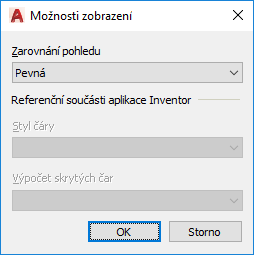 Toto dialogové okno určuje způsob ukotvení geometrie pohledu a způsob zobrazení referenčních součástí aplikace Inventor.