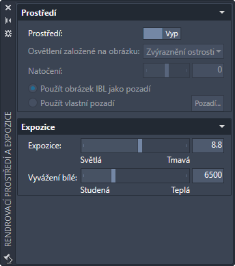 Pomocí palety Rendrovací prostředí a expozice nastavíte globální osvětlení scény.