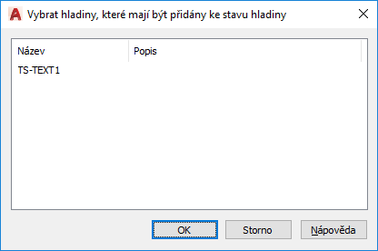 Zobrazí název a popis hladin, které nebyly přidány do stavu hladiny. Vyberte hladiny, které chcete přidat, a klikněte na tlačítko OK.
