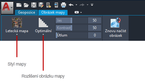 Pokud jste přihlášeni k účtu služby Autodesk, můžete změnit rozlišení obrázků map, upravit jejich rozsah, přizpůsobit jejich neprůhlednost nebo je aktualizovat na poslední verzi, která je k dispozici v online službě map.